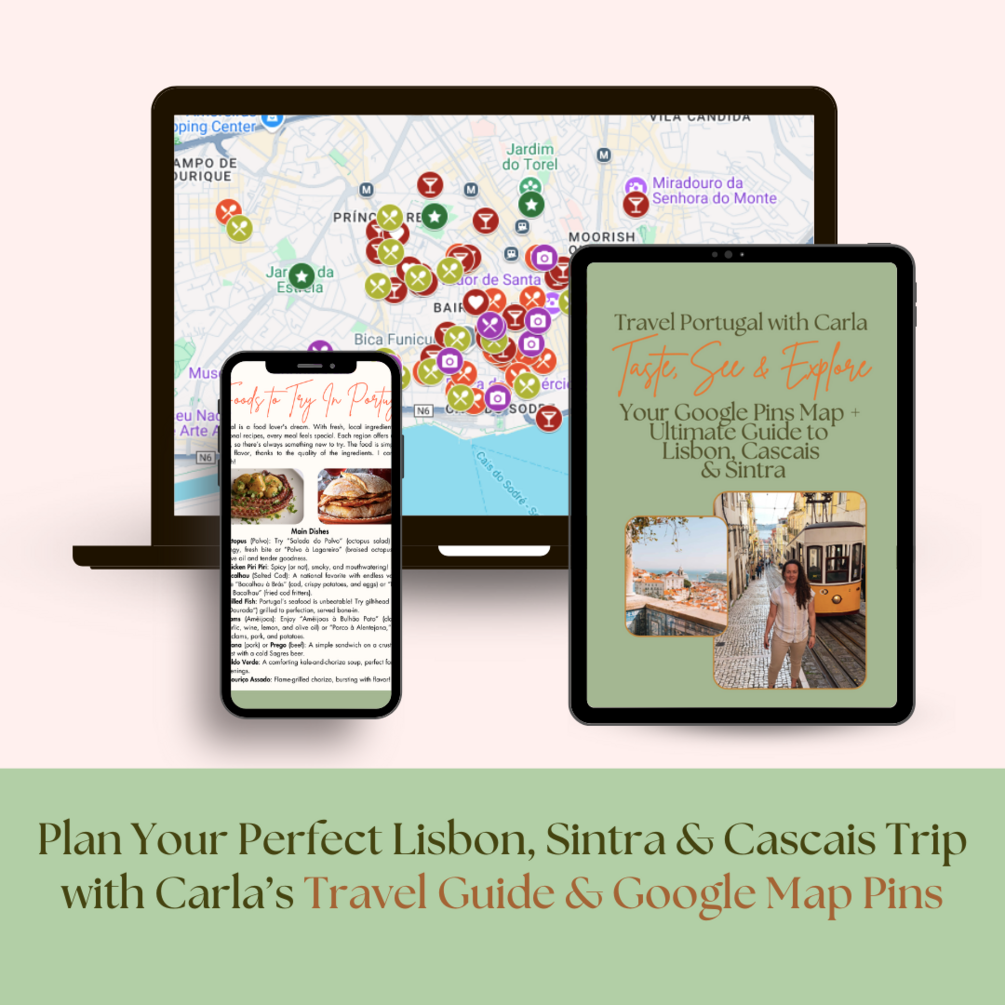 Planning a trip to Lisbon, Sintra, or Cascais? Simplify your adventure with Travel Portugal with Carla’s Google Map Pins AND exclusive 20-page guide! Perfect for travelers who seek to deeply immerse themselves in Portugal's culture and uncover the hidden spots cherished by locals.
